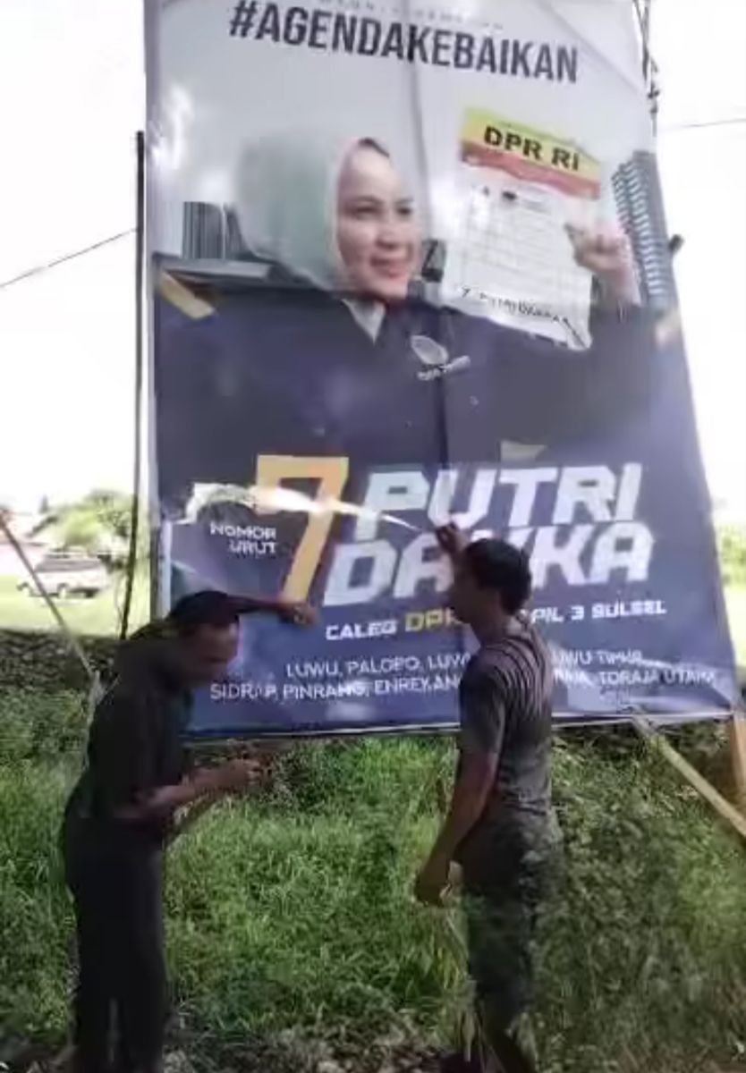 Dalam komentarnya Putri Dakka menuliskan curahan hatinya, karena begitu banyak baliho miliknya yang dirobek oleh oknum tak bertanggung jawab.