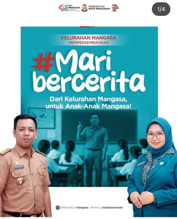 Khusus di Kelurahan Mangasa, program edukasi mingguan yang menghadirkan Lurah Mangasa Muhammad Nurdyansyah, S.IP beserta Ketua TP PKK Kelurahan Mangasa Hartina Akhmad dalam kesempatan ini mendongeng Cerita Rakyat Makassar di sekolah.