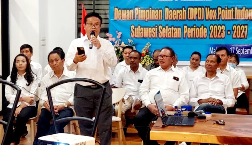 NusantaraInsight, Makassar — Agustinus Bangun, SH, MH kini resmi memimpin kepengurusan Dewan Pimpinan Daerah (DPD) Vox Poin Indonesia (VPI) Sulawesi Selatan (Sulsel) untuk masa bakti 2023-2027. Pengacara senior ini dilantik oleh Ketua Umum Dewan Pimpinan Nasional (DPN) VPI, Yohanes Handoyo Budhi Sejati secara daring menggunakan aplikasi zoom meeting dari kantor pusat di Jakarta, Minggu (17/9/2023) malam.