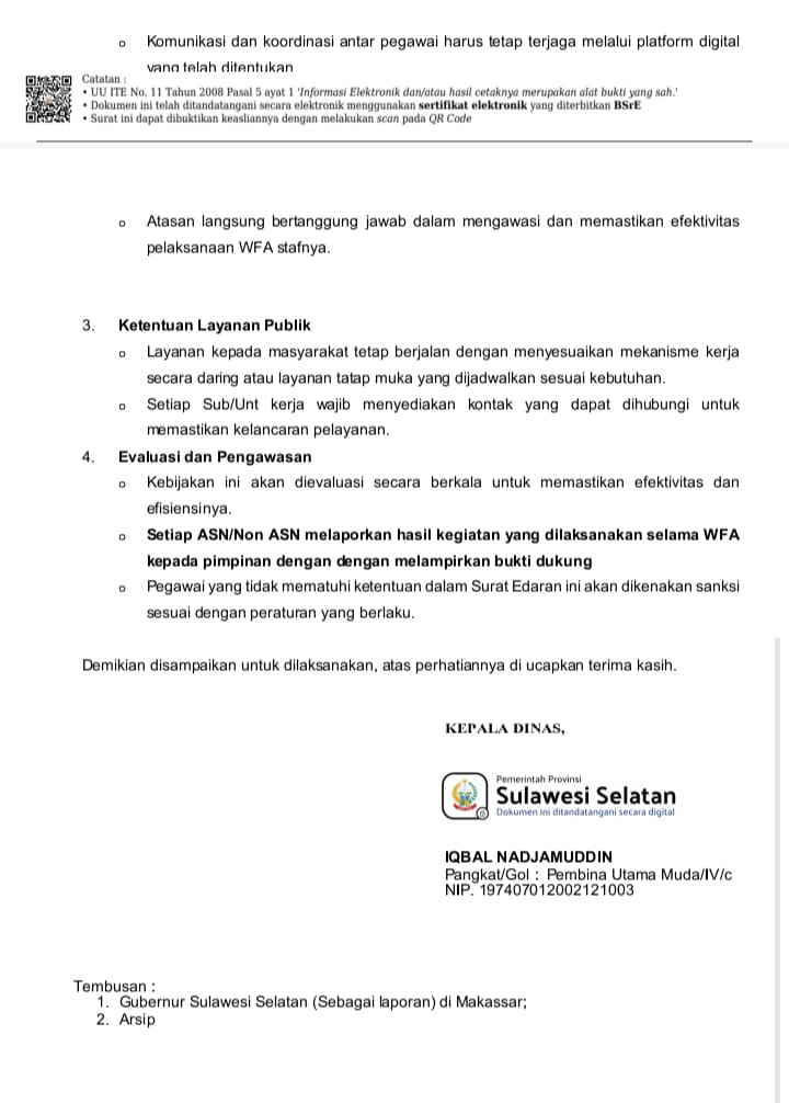 Setelah dilakukan selama dua bulan yakni Maret dan April, Disdik Sulsel melalui Surat Edarannya No 100.3.4/2453/DISDIK, mengadakan WFA untuk Mei dan Juni 2024.