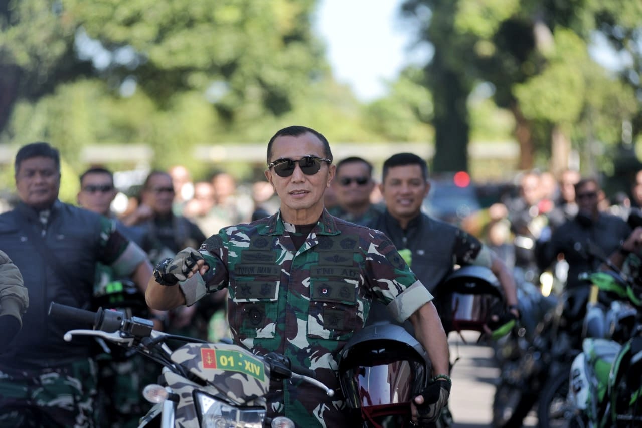 NusantaraInsight, Gowa – Kunjungan ke Kodim 1409/Gowa, kali ini ada yang beda. Pangdam XIV/Hasanuddin Mayjen TNI Dr Totok Imam Santoso, menggunakan motor Trail.