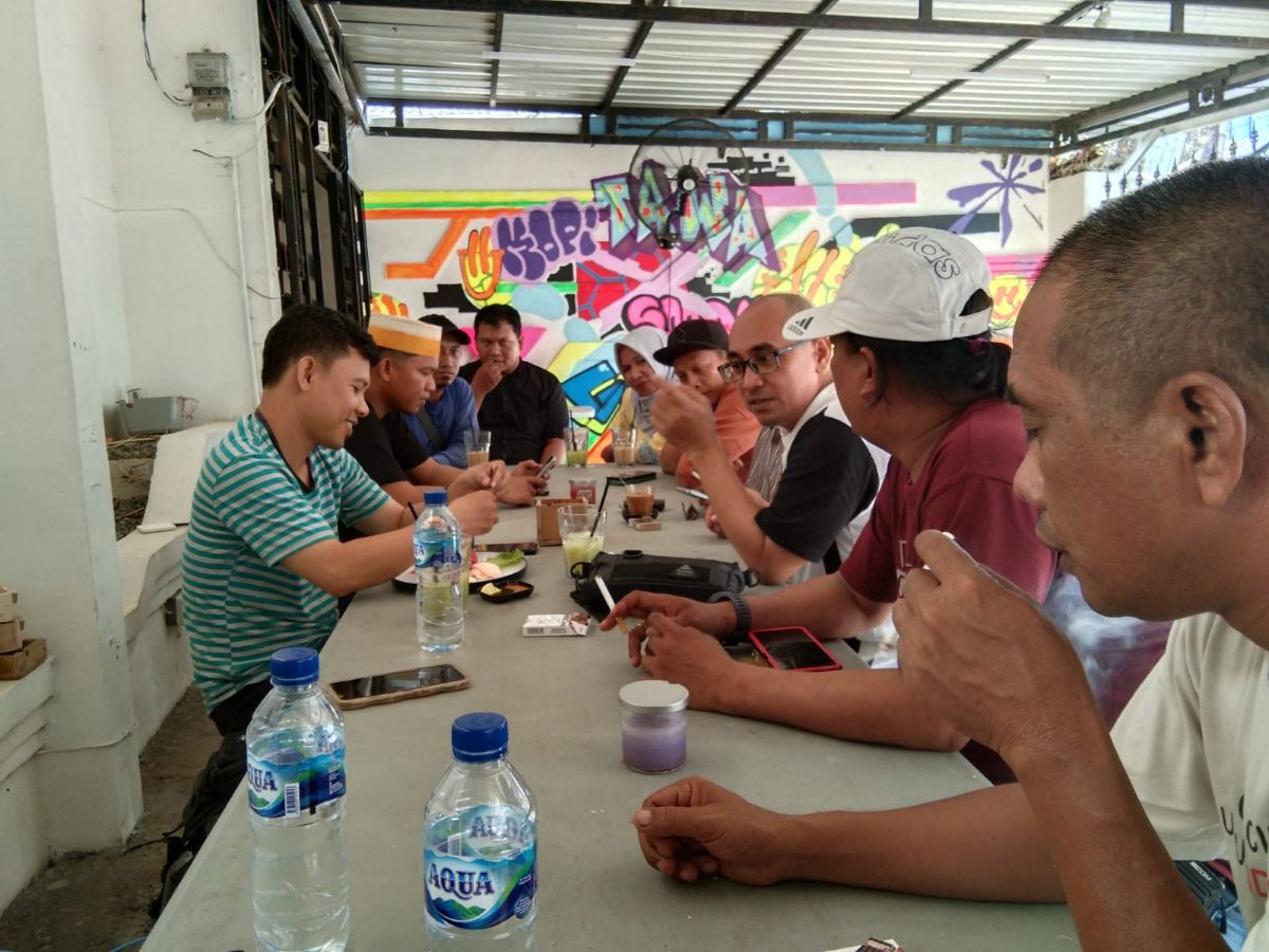 NusantaraInsight, Makassar – Sekretaris DPW JOIN Sulsel Sudarman Djoni didampingi Direktur Pusdiklat JOIN Nasional Zulkarnain Hamson gelar rapat evaluasi internal di Kopi Ketawa, Makassar, Sabtu (21/10/2023).