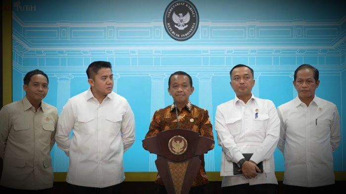 Dalam jumpa pers ini turut hadir Menteri ESDM Bahlil Lahadalia, Menteri Kehutanan Raja Juli Antoni, Menteri Lingkungan Hidup Hanif Faisol Nurofiq, Seskab Teddy Indra Wijaya.