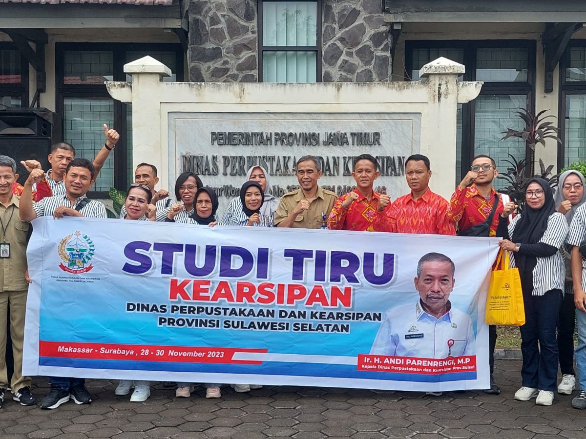 Untuk itulah Pemerintah Provinsi Sulawesi Selatan melalui Dinas Perpustakaan dan Kearsipan (DPK) melaksanakan Studi Tiru Kearsipan pada tanggal 28 November 2023 yang mana lokusnya adalah Dinas Perpustakaan dan Kearsipan Provinsi Jawa Timur. Peserta Studi Tiru ini terdiri Pejabat Struktural, Pejabat Fungsional Arsiparis dan Pemerhati Kearsipan Sulawesi Selatan. Tiba di Surabaya atau tepatnya pada DPK Provinsi Jawa Timur para peserta disambut dan diterima resmi oleh Drs.Tidor Arif, MM selaku Kepala Bidang Kearsipan yang dalam hal ini mewakili Kepala DPK Provinsi Jawa Timur didampingi Pejabat Struktural dan Pejabat Fungsional Arsiparis.