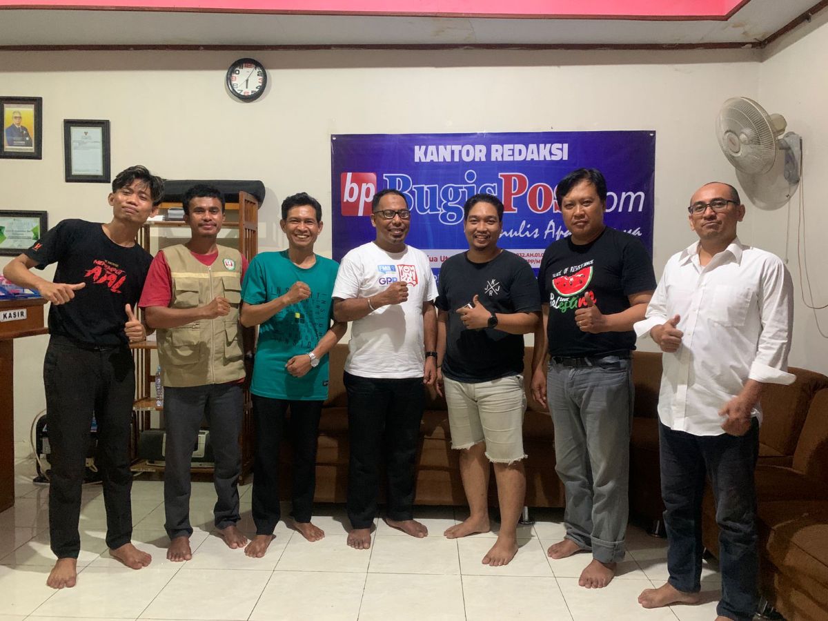 Sementara itu, Pemimpin Redaksi (Pemred) BugisPos.com Arwan D. Awing menyampaikan terima kasihnya kepada Sutradara dan Crew Film MENJEMPUT AJAL yang berkunjung ke kantor Redaksi.
