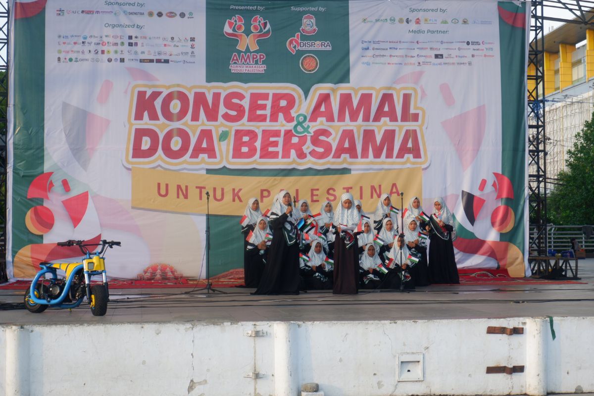 NusantaraInsight, Makassar — Menyambut pergantian tahun, Aliansi Masyarakat Peduli Palestina (AMPP) menggelar Konser Amal dan Doa Bersama untuk Palestina, Minggu (31/12/2023) di Lapangan Karebosi Makassar Sulawesi Selatan.