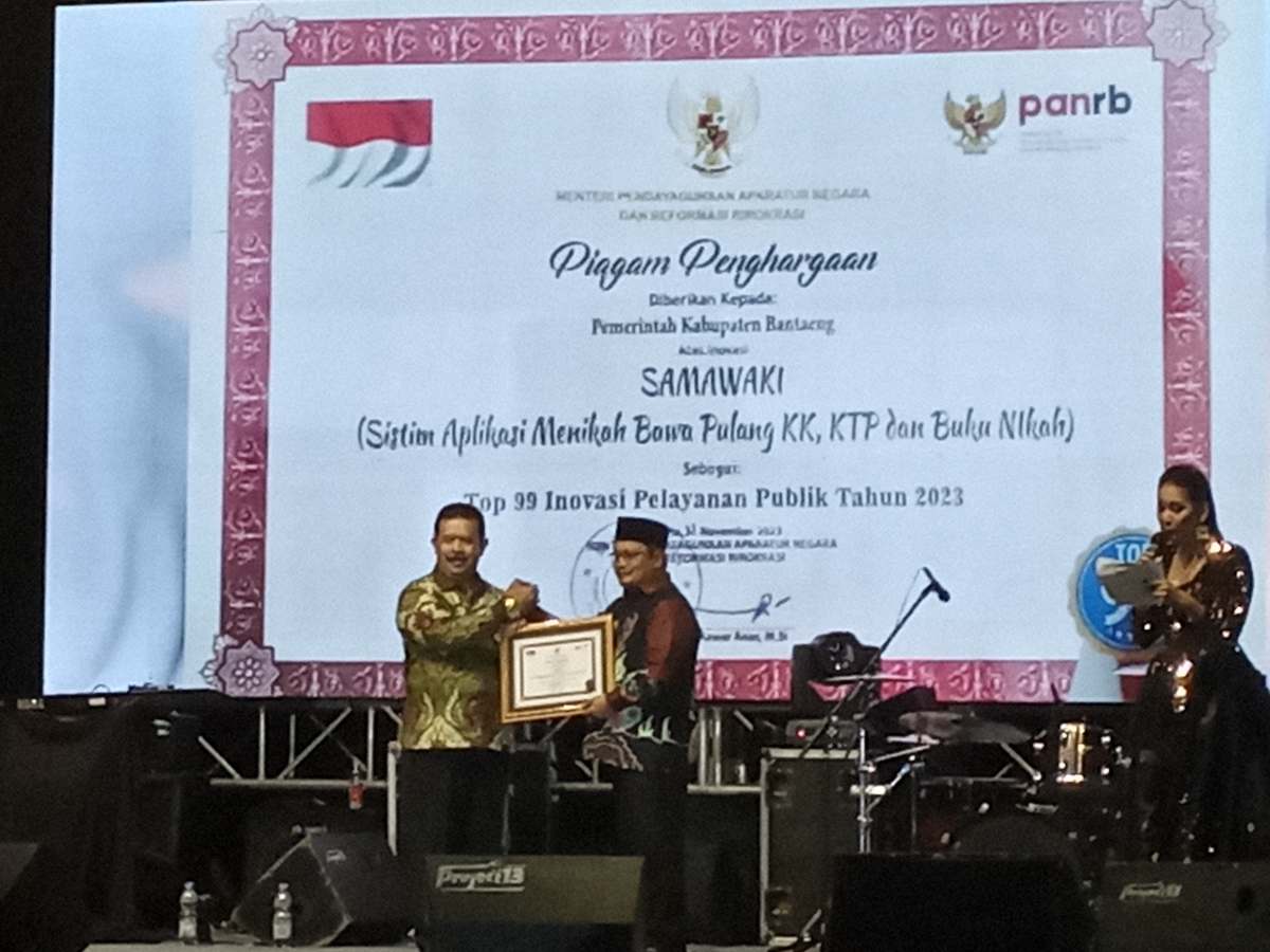 Penghargaan yang diraih Kabupaten Bantaeng yaitu penghargaan dari Kementerian Pendayagunaan Aparatur Negara dan Reformasi Birokrasi (KemenPAN RB) berupa aplikasi SAMAWAKI yang masuk Top 30 Pelayanan Publik yang diberikan oleh PJ Bupati Bantaeng Andi Abubakar kepada Kadisdukcapil Bantaeng Drs.Ali Imran.