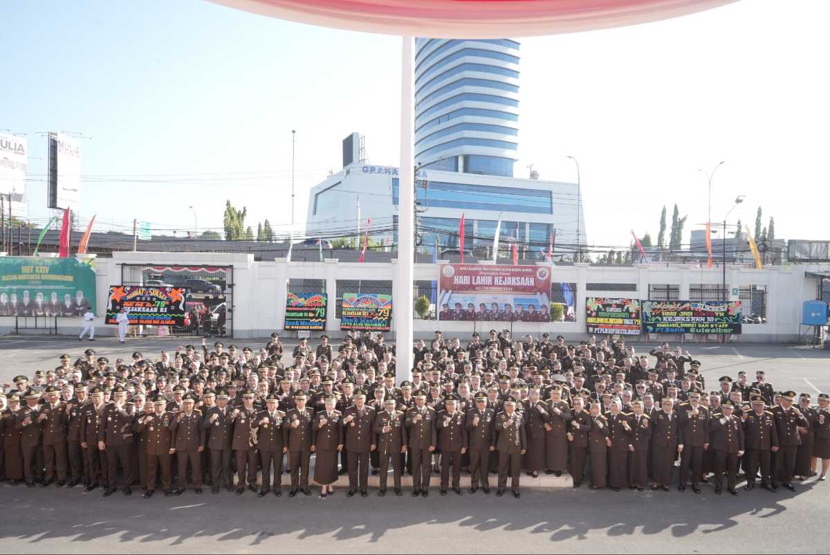 NusantaraInsight, Makassar — Kejaksaan Tinggi Sulawesi Selatan menggelar upacara peringatan Hari Lahir Kejaksaan RI Ke-79 Tahun 2024 di halaman Kantor Kejati Sulsel, Senin (2/09/2024).