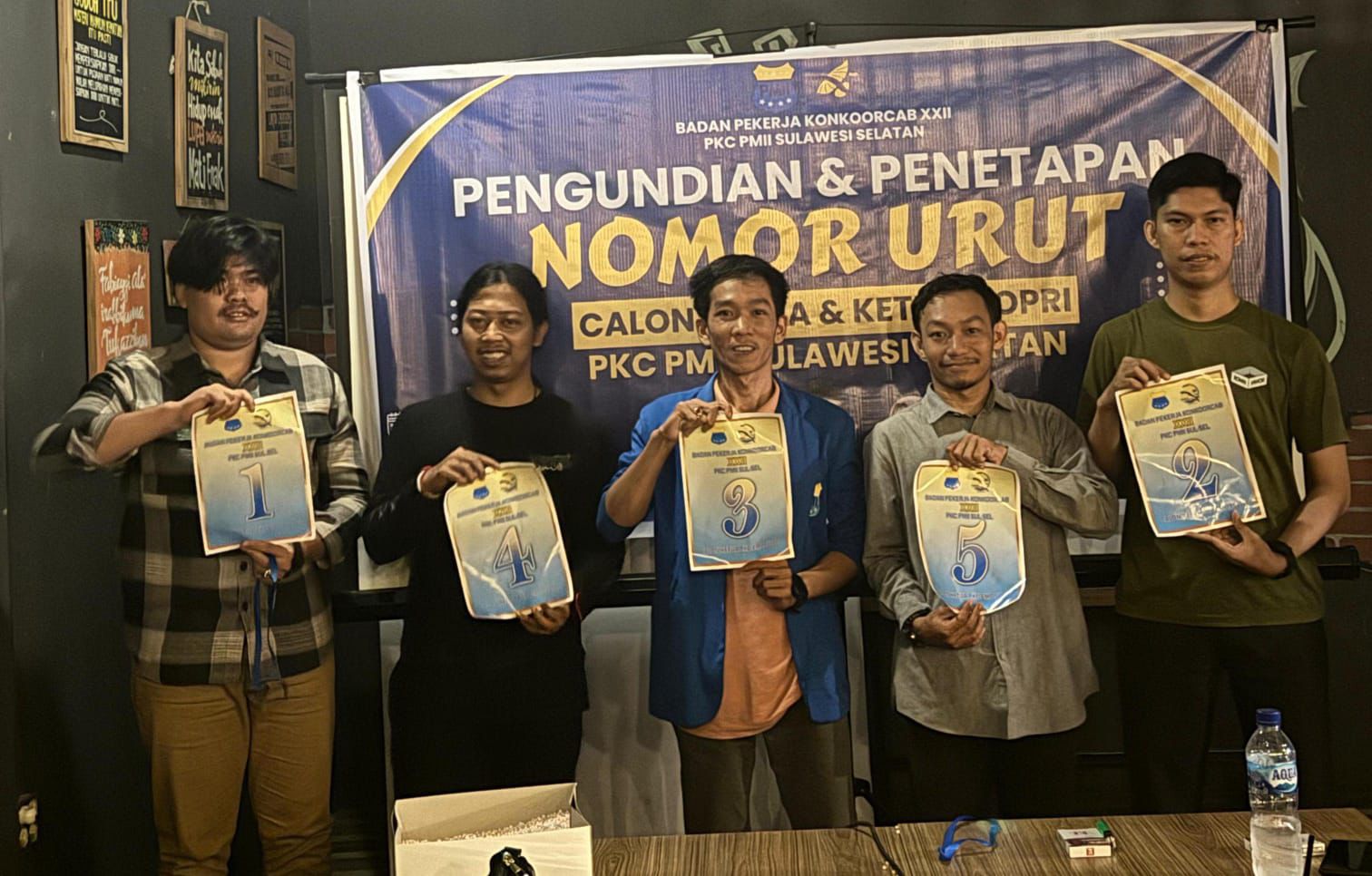 Sebanyak 5 kader pun telah ditetapkan oleh Badan Pekerja Konkoorcab (BPK) untuk bersaing merebut posisi puncak dalam tubuh PMII Sulawesi selatan ini. Pengambilan nomor urut pun telah dilakukan pada Senin (24/6) malam di Makassar.