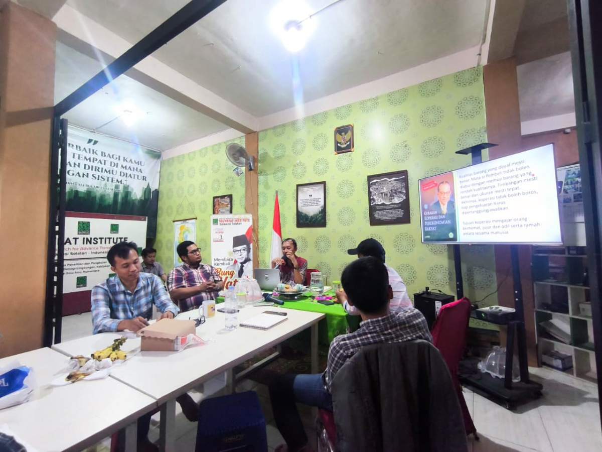 Diskusi rutin kali ini, menghadirkan dua pemantik sekaligus pembaca buku, yakni: Muhammad Satriawan Hamsari, S.P (Peminat Gerakan Koperasi dan Pelaku UMKM) serta Arifin, S.AP., M.AP (Plt. Kabid PPMPI – Pemerintahan, Pembangunan Manusia, Perekonomian dan Infrastruktur – Bappelitbangda Kabupaten Takalar).