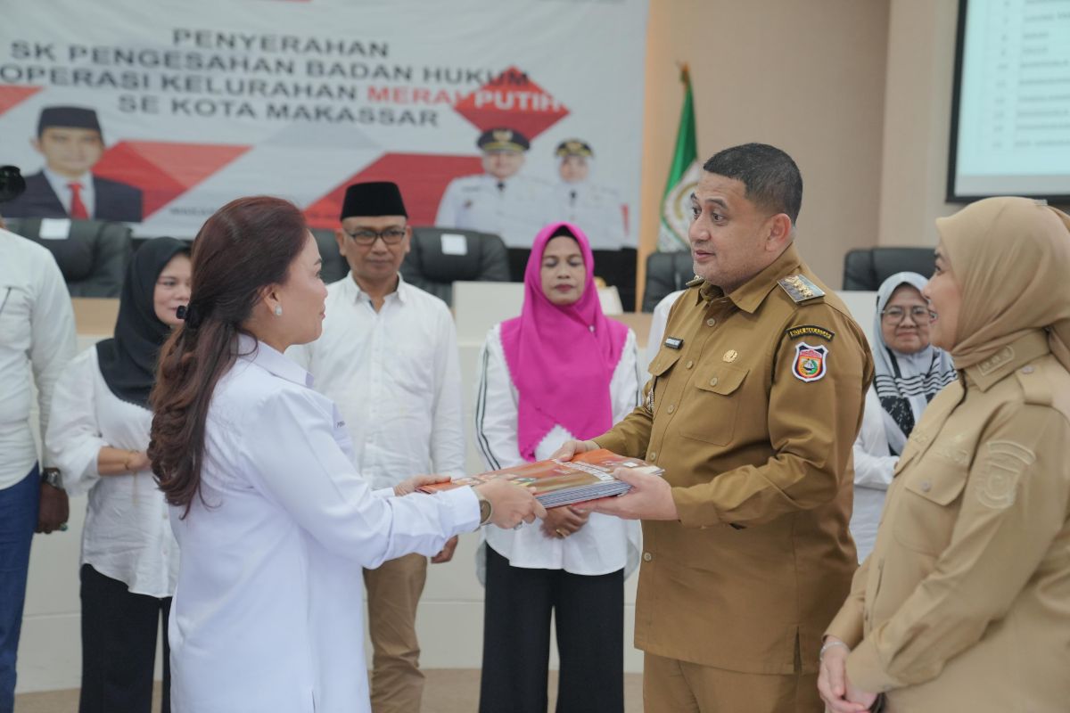 Penyerahan SK tersebut diberikan langsung kepada pengurus dan pengawas Koperasi Merah Putih di lingkup Kota Makassar sebagai wujud legalitas dan penguatan kelembagaan koperasi secara formal.