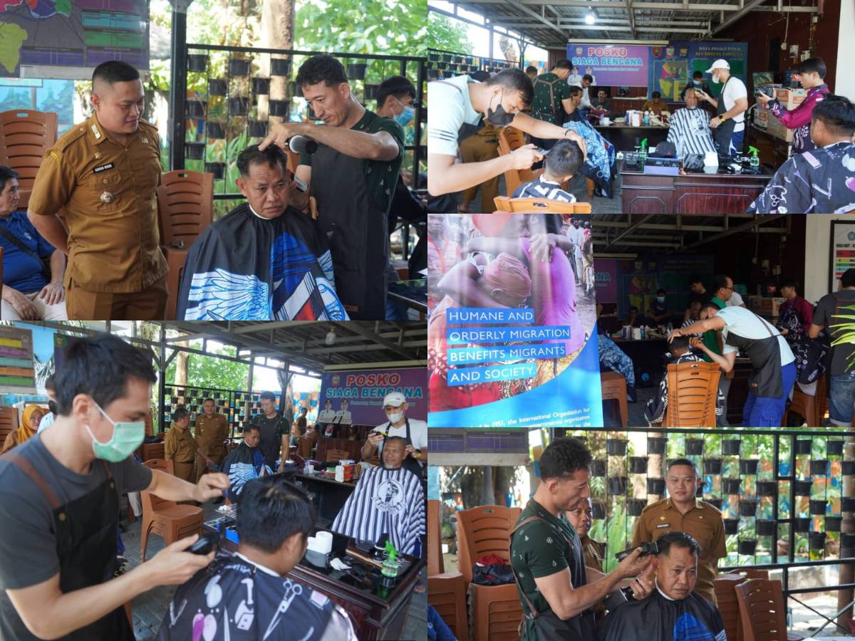 Bersama IOM (International Organization for Migration) dan pemerintah setempat, mereka menyuguhkan cukur gratis bagi 60 lebih warga, Satgas Kebersihan, RT/RW, serta ASN.