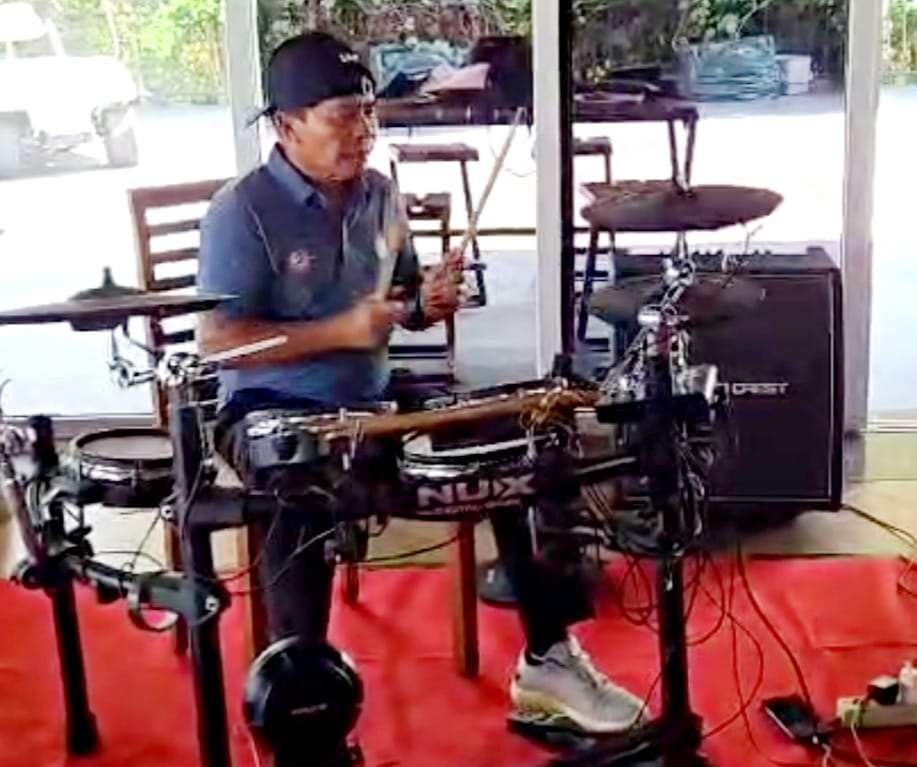 Usau beraksi dibelakang perangkat set drumm, Ketua Umum Persatuan Golf Alumni (PGA) Unhas itu kembali tampil menghibur hadirin yang memadati area Restoran Padi Valley. Kali ini Ia maju ke depan mengambil mikrofon dan mengumandangkan suara emasnya berduet bersama vokalis band lewat sebuah lagu lawas yang berirama gembira.