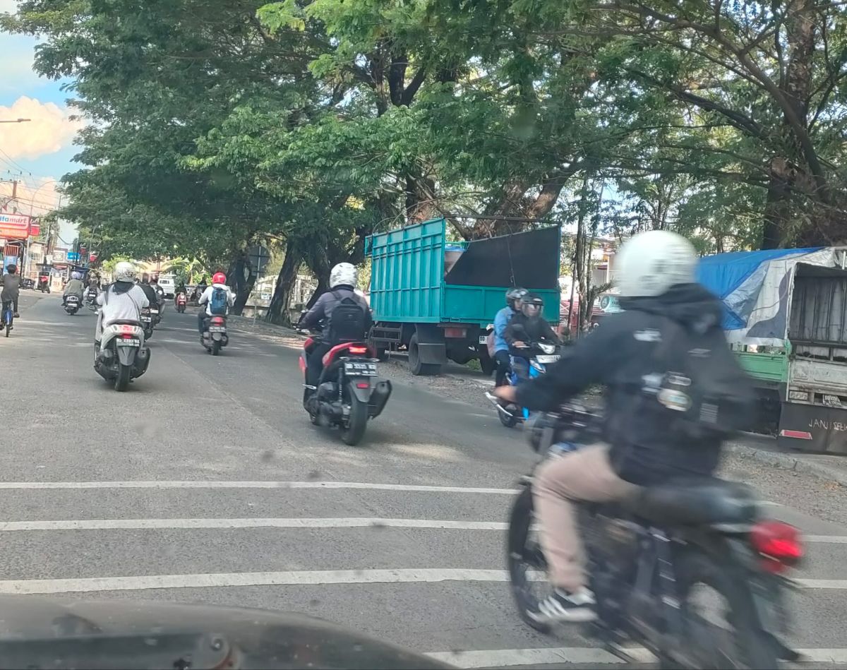 “Mereka itu hanya takut pada Polisi, bukan pada aturan lalu lintas,” kata salah seorang pengguna jalan pada poros itu.