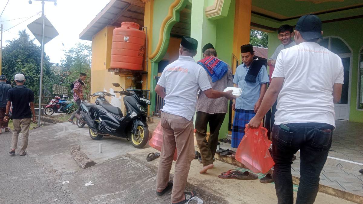 Jajaran Direksi dan Crew Manejemen membagikan sekitar 200 nasi dos kepada jamaah sholat Jum’at. Para jamaah tampak antusias menerima paket makanan yang dibagikan usai pelaksanaan ibadah.