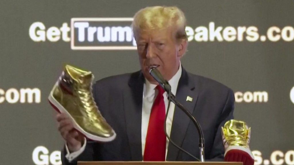 NusantaraInsight, Philadelphia — Mantan Presiden AS Donald Trump telah meluncurkan sepatu bermerek Trump miliknya sendiri di Sneaker Con pada sebuah konvensi untuk penggemar sepatu kets di Philadelphia.