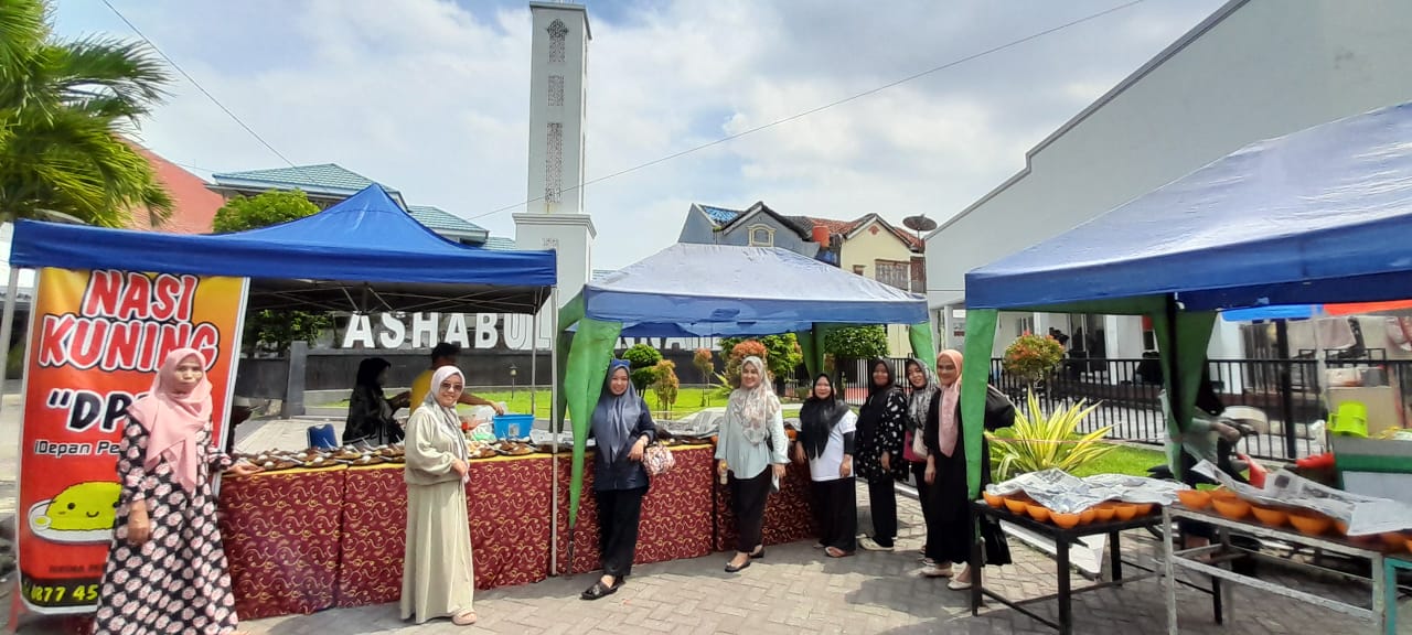 Empat tenda yang biasa berada tepat di sisi kiri masjid, kini diletakkan di jalan. Di tenda-tenda itulah diletakkan aneka makanan dan minuman yang disuguhkan secara gratis buat jamaah.