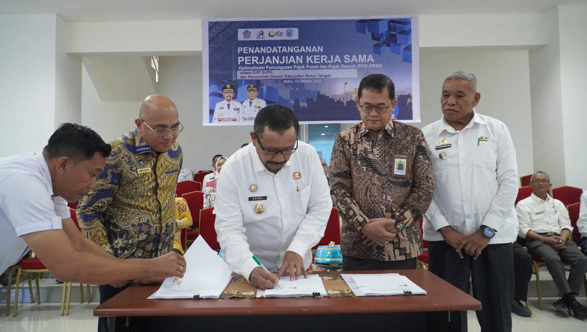 Kepala Kanwil DJP Sulselbartra, YFR Hermiyana, turut hadir secara langsung di Kabupaten Buton Tengah untuk menyaksikan pelaksanaan penandatanganan PKS OP4D di wilayah tersebut. Beliau menyampaikan bahwa kegiatan ini merupakan langkah strategis untuk memperkuat kerja sama antara pemerintah pusat dan daerah dalam mendukung optimalisasi penerimaan negara dan daerah.
