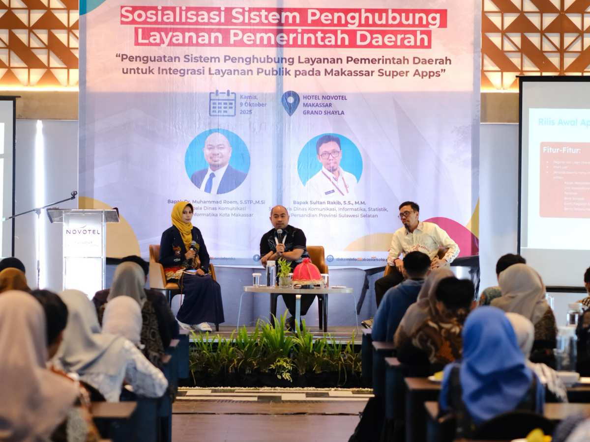 NusantaraInsight, Makassar — Dinas Komunikasi dan Informatika (Kominfo) Kota Makassar menggelar Sosialisasi Sistem Penghubung Layanan Pemerintah Daerah (SPLP) di Hotel Novotel Makassar, Kamis (9/10/2025).