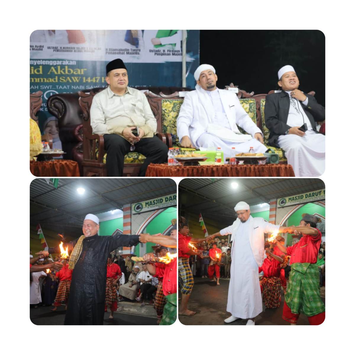 NusantaraInsight, Makassar — Wali Kota Makassar, Munafri Arifuddin, menghadiri Maulid Akbar Nabi Besar Muhammad SAW 1447 H yang digelar oleh Majelis Zikir dan Muhasabah Darut Taubah di pelataran Masjid Darut Taubah, Jalan Taman Makam Pahlawan, Kecamatan Panakkukang, Minggu malam (26/10/2025).
