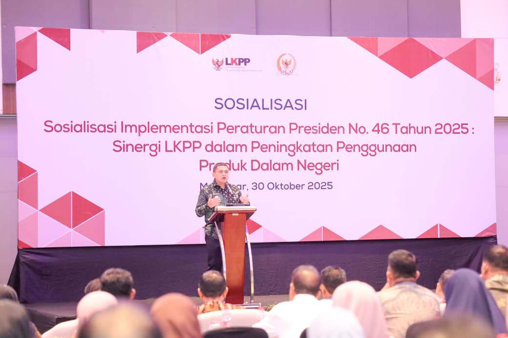 Penegasan tersebut disampaikan Munafri saat memberikan sambutan pada Sosialisasi Implementasi Peraturan Presiden (Perpres) Nomor 46 Tahun 2025 tentang Sinergi LKPP dalam Peningkatan Penggunaan Produk Dalam Negeri, yang berlangsung di Hotel Four Points by Sheraton Makassar, Kamis (30/10/2025).