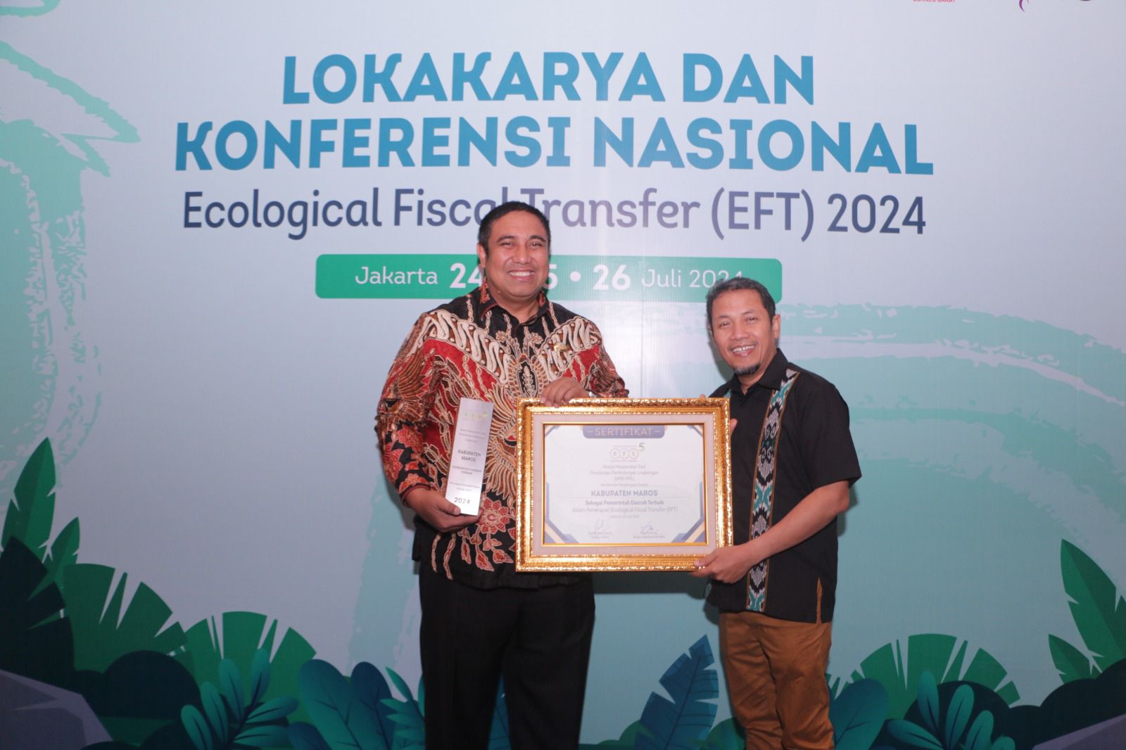 Penghargaan itu diserahkan oleh Direktur Tata Kelola Lingkungan Hidup The Asian Foundation, R Alam Surya Putra kepada Bupati Maros, Chaidir Syam didampingai Kepala Dinas Pemberdayaan Masyarakat Desa (PMD), Idrus dalam acara Lokakarya dan Konferensi Nasional EFT di salah satu hotel di Jakarta, Jumat (26/07/2024).