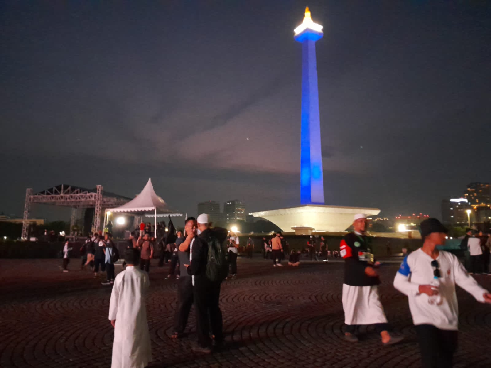 NusantaraInsight, Jakarta — Peserta aksi bela Palestina terlihat telah ramai memasuki kawasan Monas Jakarta pada subuh hari, mereka datang dari berbagai wilayah di Indonesia untuk hadir menyatakan dan menyuarakan dukungan terhadap Palestina.