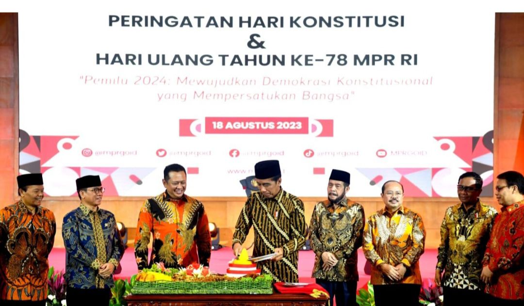 Demikian disampaikan oleh Presiden Jokowi saat menghadiri peringatan Hari Konstitusi sekaligus Hari Ulang Tahun Ke-78 Majelis Pemusyawaratan Rakyat Republik Indonesia (MPR RI) yang digelar di Gedung MPR RI, pada Jumat, 18 Agustus 2023.