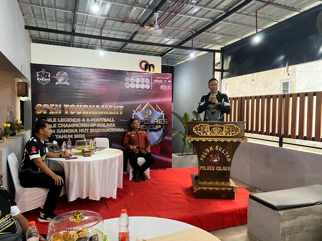 Turnament tersebut dibuka secara langsung oleh Kapolres Kolaka AKBP Yudha Widyatama Nugraha, S.I M.H.,CPM dihadiri Oleh Bupati Kolaka yang diwakili oleh Plt. Kepala Dinas Pemuda dan Olahraga Agus S.IP, M.T,. Ketua Komisi III DPRD Kab. Kolaka Israfil Sanusi Caco, Wakapolres Kolaka Kompol Mochammad Salman S.H, S.I.K, M.H., Camat Kolaka Ritzky Mario, S.STP, M.Si., Kasat Intelkam Polres Kolaka IPTU Muh. Yusran S.IP, M.M., Ketua HIPMI Kolaka M. Yunus Wahid S.Kom.,Ketua Harian Esport Kolaka Fauzan Hasbi.,Ketua BEM Fakultas USN Kolaka, Ketua Organisasi Kemahasiswaan Kolaka, Para Peserta sebanyak 57 (E-Football) dan peserta mobile legend sebanyak 21 tim