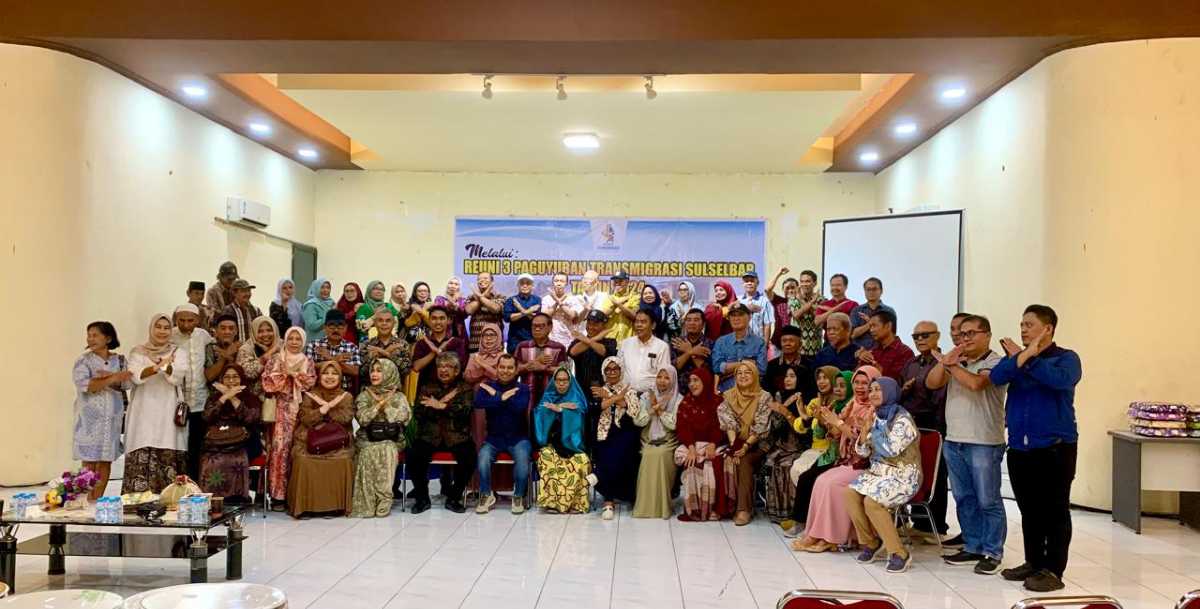 NusantaraInsight, Makassar — Paguyuban Transmigrasi Sulselbar menggelar reuni ke-3 di Aula Balai Transmigrasi Baddoka Makassar, Sabtu (14/12/2024).