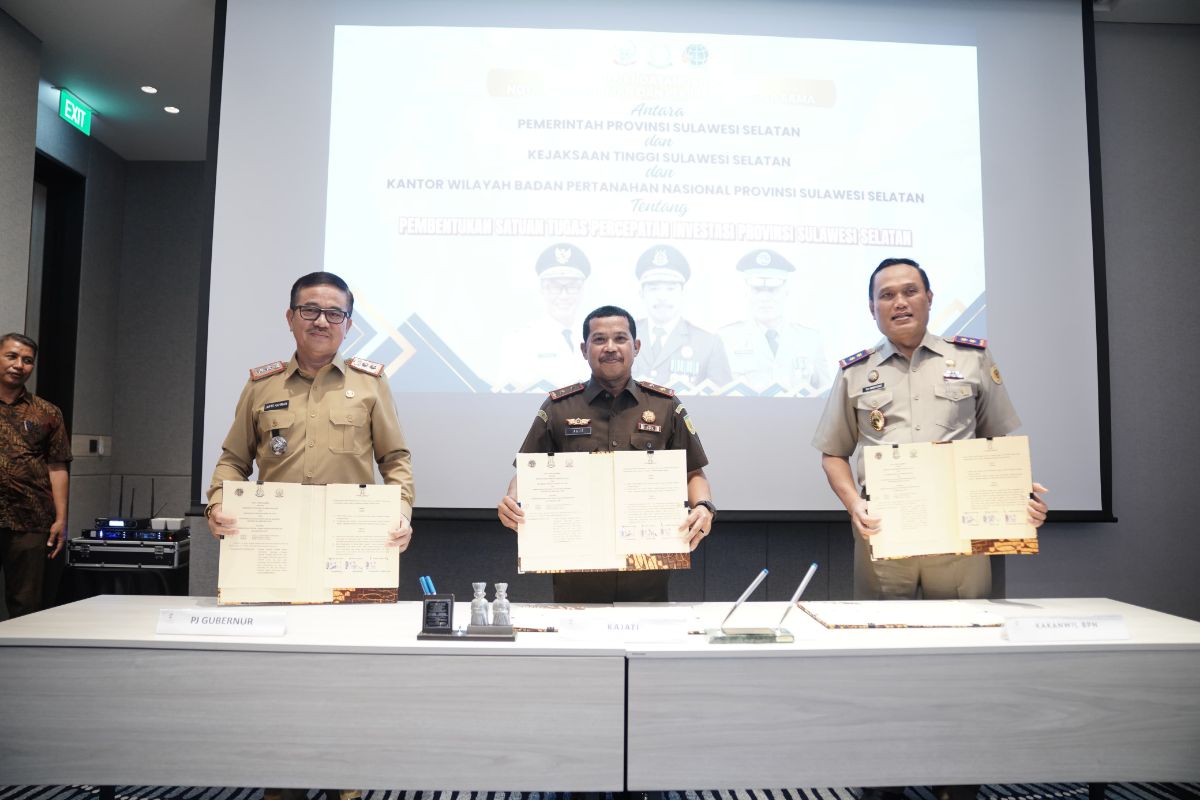 Bentuk Satgas Percepatan Investasi Bersama Kejati dan BPN Sulsel, Sekda Optimistis Realisasi Investasi Sulsel akan Meningkat