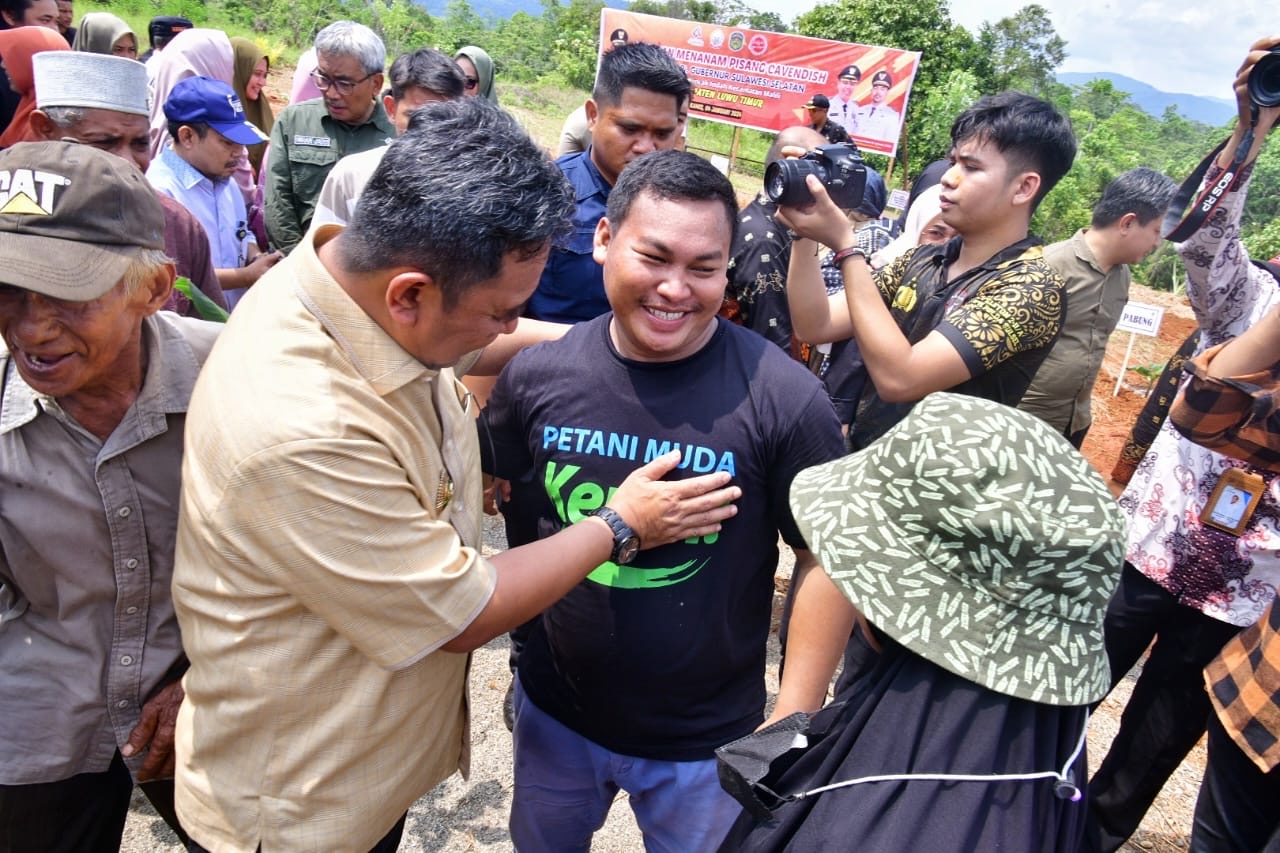 NusantaraInsight, Malili — Petani Muda Keren Batara Guru Kabupaten Luwu Timur ikut menanam pisang cavendish bersama Penjabat Gubernur Sulawesi Selatan (Sulsel), Bahtiar Baharuddin, didampingi Bupati Luwu Timur, Budiman, pada Penanaman Perdana Komoditas Pisang Cavendish, Kamis, 4 Januari 2024.