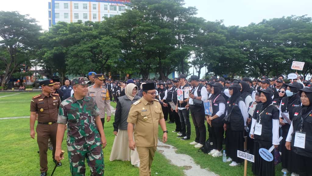 NusantaraInsight, Bantaeng — Pj Bupati Bantaeng Andi Abubakar menghadiri apel siaga pengawasan masa tenang, pemungutan dan penghitungan suara Pemilu Tahun 2024 di Lapangan Tribun Pantai Seruni Bantaeng pada Ahad, 11 Februari 2024 pagi.