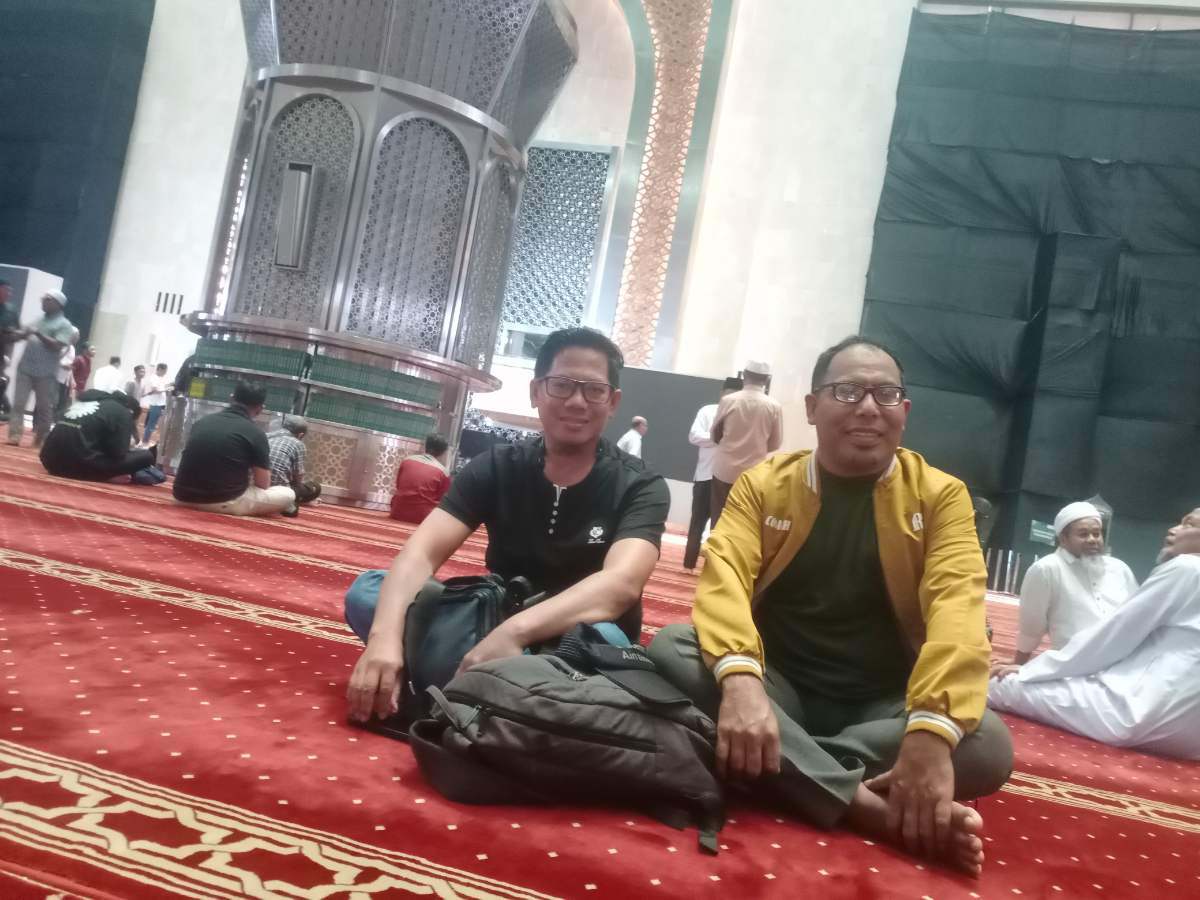 Setelah ritme perjalanan yang lambat namun tetap menyisakan tawa, kami akhirnya tiba di Istiqlal tepat waktu. Wudhu dengan air dingin di lantai dasar seperti merontokkan penat perjalanan. Kami naik ke ruang utama lantai dua, menemukan tempat duduk, dan tidak lama setelah duduk muadzin mengumumkan khutbah akan dimulai. Lima menit kemudian, masjid berubah hening. Bukan hening kosong, tapi hening yang penuh. Hening yang membuat dada terasa lapang.