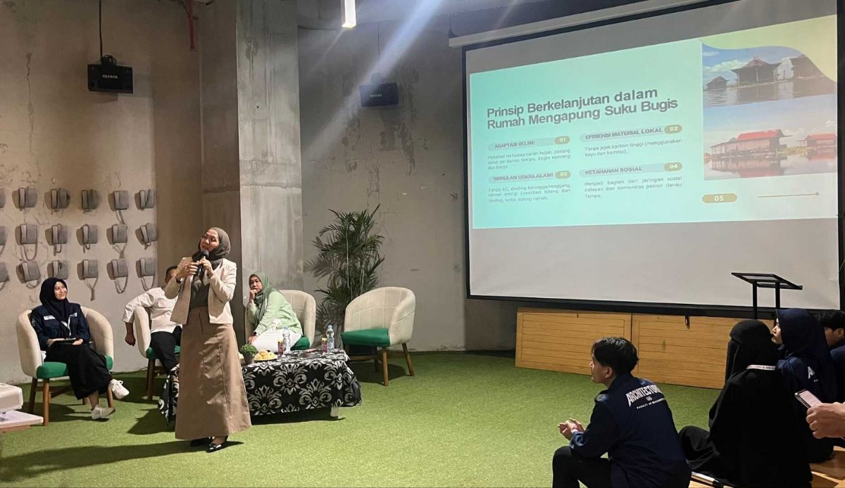 Guru Besar UMI Bidang Arsitektur, Prof. Naidah Naing menekankan pentingnya konsep ‘ruang bernafas’ dalam arsitektur berkelanjutan. Ia juga menyoroti rumah mengapung Suku Bugis sebagai contoh arsitektur lokal yang dapat menjadi inspirasi bagi desain masa depan yang lebih ramah lingkungan dan adaptif terhadap perubahan iklim.