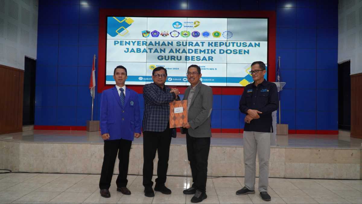 Dosen tersebut adalah Sekretaris Divisi Penelitian LP3M Unismuh Makassar, Prof. Dr. Agustan S., M.Pd. SK selaku Guru Besar Pendidikan Matematika diterima secara resmi di Kantor LLDIKTI Wilayah IX, Jl. Bung Tamalanrea, Selasa 31 Desember 2024.