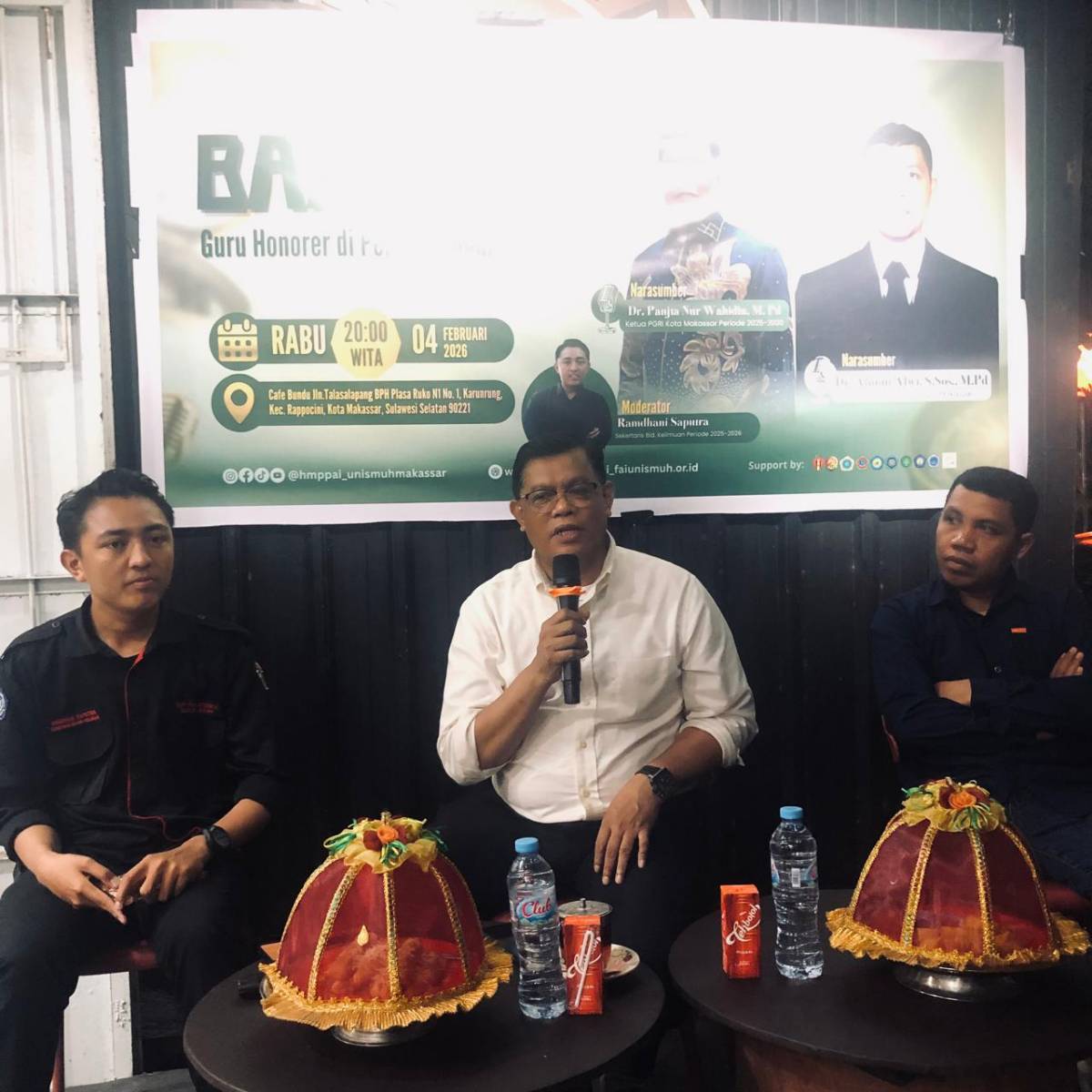 Pada Bazar Dialog yang digelar di Cafe Bundu, Rabu (4/2/2026) menghadirkan Ketua PGRI Kota Makassar Dr Pantja Nur Wahidin, S.Pd.,M.Pd dan juga Akademisi Universitas Negeri Makassar (UNM) Dr. Alimin Alwi, S.Sos., M.Pd