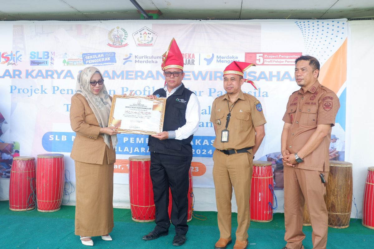 Penghargaan tersebut diberikan di sela-sela acara Gelar Karya dan Pameran Kewirausahaan Projek Penguatan Profil Pelajar Pancasila (P5) yang diadakan di SLB Negeri 1 Pembina Makassar, Senin (11/12/2023).