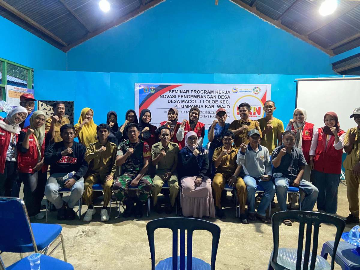 NusantaraInsight, Wajo — Mahasiswa itu merupakan agen perubahan. Semangat ini yang dibawa oleh mahasiswa Kuliah Kerja Nyata (KKN) Universitas Hasanuddin (Unhas) Gelombang 114 di Desa Macolli Loloé, Kecamatan Pitumpanua, Kabupaten Wajo, saat mengadakan Seminar Program Kerja di Kantor Desa Macolli Loloé, Selasa, 15 Juli 2025.