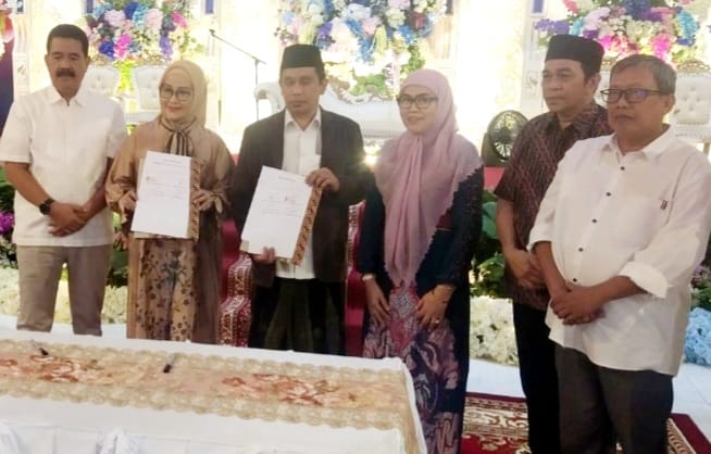 Selesai prosesi pengguntingan pita, selanjutnya Rektor UIM Prof. Dr. H. Muammar Bakry, Lc, M.Ag sebagai pemilik gedung, bersama Ny. Igel Idayanti (Owner Igel Decoration) selaku pengelola tempat itu melakukan penandatanganan perjanjian kerjasama dengan disaksikan sejumlah pejabat UIM, staf Igel Decoration, dan para undangan diantaranya kerabat alumni Smansa 82 serta keluarga besar Umar Amri.