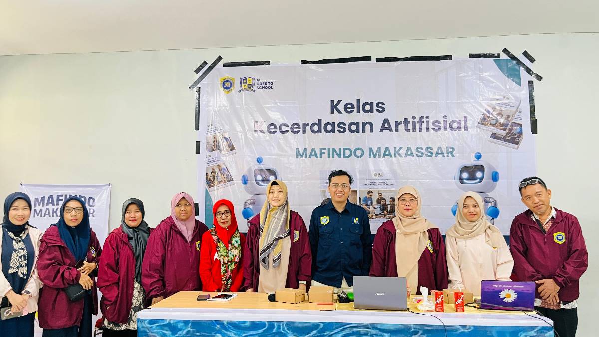 NusantaraInsight, Makassar — Masyarakat Anti Fitnah Indonesia (Mafindo) wilayah Makassar menggelar kelas kecerdasan artifisial dalam rangka program nasional AI Goes to School di SMP Telkom Makassar, Sabtu (23/8/2025).