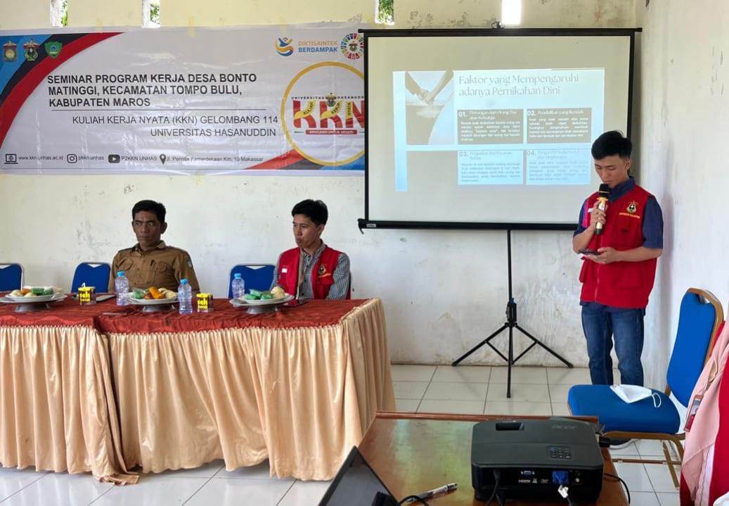 Sebagai bagian dari Kuliah Kerja Nyata Tematik (KKN-T) Universitas Hasanuddin, program sosialisasi mengenai larangan pernikahan dini pun digelar di Desa Bonto Matinggi, pada 21 Juli 2025 lalu.