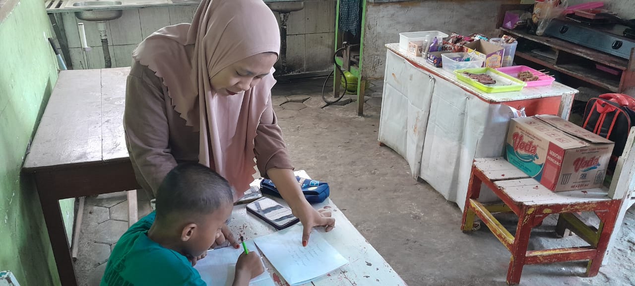 Bu Ariati sudah 3 tahun, berjualan. Anaknya, Abil, selalu ikut. Bahkan saat bocah itu belum masuk Taman Kanak-Kanak (TK).