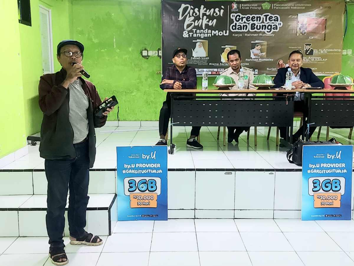 NusantaraInsight, Makassar — Komunitas Anak Pelangi (K-Apel) bersama Universitas Pancasakti (Unpacti) Makassar menggelar diskusi buku Green Tea dan Bunga karya Rahman Rumaday (Founder K-Apel), Senin (6/1/2024) di Aula Unpacti Makassar.