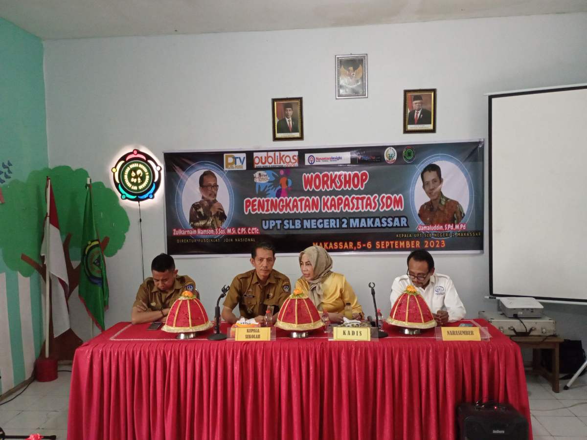 NusantaraInsight, Makassar — Unit Pelaksana Teknis (UPT) Sekolah Luar Biasa (SLB) Negeri 2 Makassar Jalan Pahlawan nomor 10 Bulurokeng Makassar mengadakan Workshop Peningkatan Kapasitas Sumber Daya Manusia (SDM), Selasa (5/9/2023).