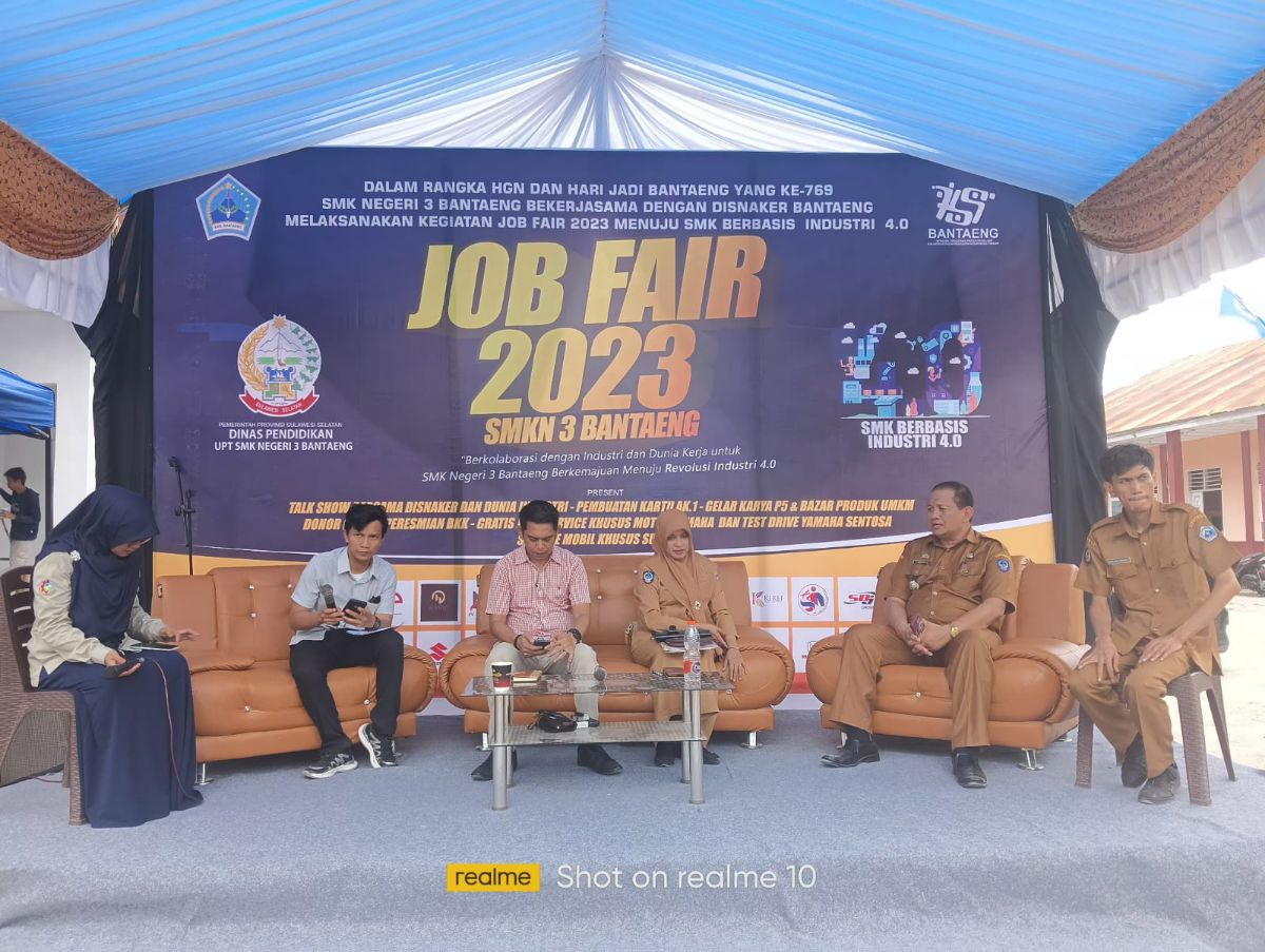 Kegiatan dengan tajuk Berkolaborasi dengan industri dan dunia kerja untuk SMKN 3 Bantaeng berkemajuan menuju revolusi industri 4.0 dimeriahkan dengan Talk Show bersama Disnaker dan pembuat kartu AK.1, gelar karya P5 dan bazar produk UMKM, donor darah, peresmian BKK, gratis servis khusus Yamaha dan tes Drive Yamaha Sentosa.