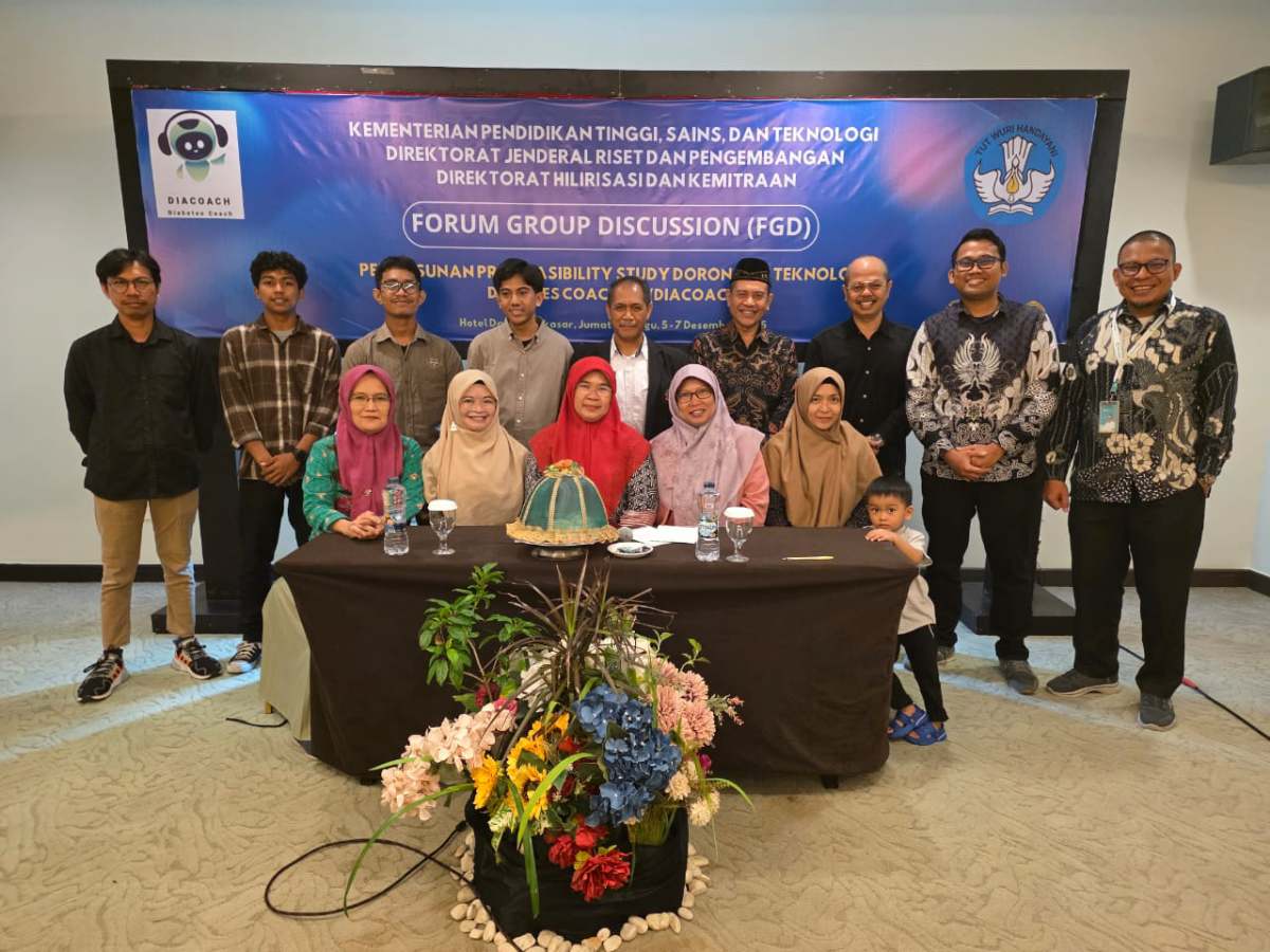 Pelaksanaan FGD bertujuan untuk merumuskan rekomendasi teknis dan non-teknis terhadap kesiapan hilirisasi Teknologi Diabetes Coaching (DiaCOACH) sebelum masuk ke tahapan adopsi dan komersialisasi.