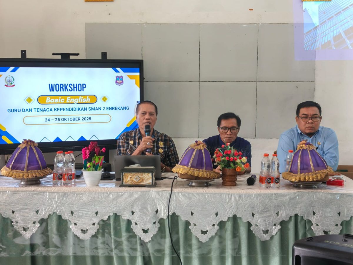 NusantaraInsight, Enrekang — Kepala SMA Negeri 2 Enrekang (Sukayono,S.Pd.,M.Pd.) dengan antusias membuka kegiatan Workshop Basic English yang ditujukan untuk para guru dan tenaga kependidikan di sekolah tersebut, pada Jumat (24/10/2025)