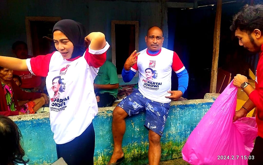 Menyusuri jalan-jalan dan lorong sempit di Kelurahan Parangloe, Kelurahan Bira (Jl. Lantebung, Jl. Sangngalinna), Kelurahan Untia (Jl. Salodong, dan Kampung Nelayan), serta Kelurahan Daya (kompleks Pasar Daya lama Jl. Paccerakkang), tim pemenangan dari calon anggota DPRD Kota Makassar Dapil 3 (Tamalanrea dan Biringkanaya) nomor urut 2 yang diusung Partai Solidaritas Indonesia (PSI) ini ‘menghamburkan’ kurang lebih 1.000 lembar baju kaos PSI.