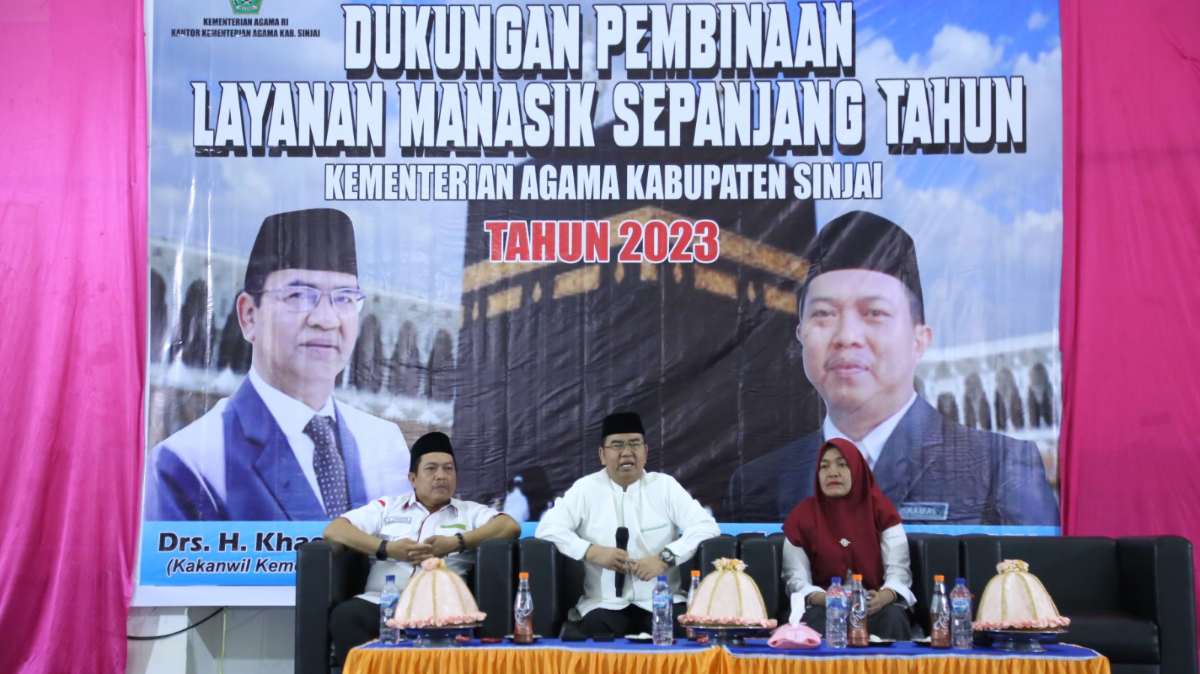 Kakankemenag Sinjai H. Jamaris dalam sambutannya membeberkan bahwa Tugas utama Kementerian Agama dalam pelaksanaan ibadah haji adalah menjalankan Fungsi Layanan, Pembinaan dan Perlindungan Jemaah Haji dan diharapkan para calon jemaah haji semaksimal mungkin rutin mengikuti bimbingan Manasik Haji mulai dari sekarang sampai tiba waktunya diberangkatkan.